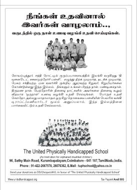 Send your donations as DD/Cheques/MO, in favour of “The United Physically Handicapped School”