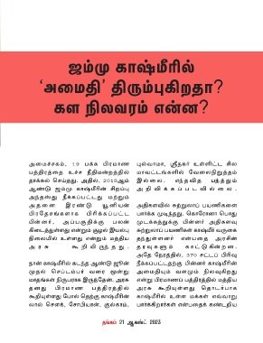 ொன் காஷமீரில் கடந்த ஆணடு �ூன் நீககப்பட்டதறகு பின்ைர காஷமீரின்