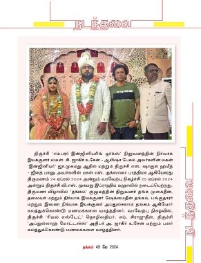 திருேணம் 24 ஏபரல் 2024 அன்றும் வரமவற்பு நி்கழ்ச்சி 25 ஏபரல் 2024